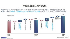 こうした取り組みの結果、中期EBITDAの見通しとして2023年度は900億円を必達とする。2024年度は1180億円を目指す。