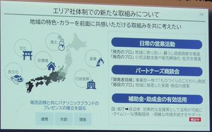 2023年からは、販売会社が全国7つのエリア社体制となり、エリア固有の対応を行っていく。「2000年以前当時の取り組みのよさを今に活かす。商品を伝え切るマーケティングの基軸の取り組みに、顧客体系価値向上とデジタル化の有効活用を合わせ、流通軸で販売店にしっかりよりそい、販促活動手段や売り方、増客・増販の提案を実践し、お役立ちを高める。エリア独自の文化を肌で感じながら販売店と一緒に活動することが最重要」と説明した。