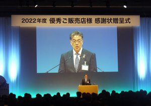 パナソニックは、系列店の日頃の支援・協力に対して感謝の意を表す「2022年度 優秀ご販売店様感謝状贈呈式」を開催。この式典は昭和29年にスタートし、今年で70回目となる。パナソニックホールディングス・津賀一宏会長、楠見雄規社長をはじめとする役員・幹部らと、販売会社などが揃って全国各地の優秀販売店を迎えた。