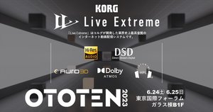 併せて、6月24日〜25日に東京国際フォーラムにて開催される「OTOTEN 2023」のコルグ・ブースにて、デモ・コンテンツを展示する。TESTSETの砂原良徳氏がLive Extremeのために制作した、オリジナルの立体音響作品「Surround Speaker Test」のDolby Atmos版も、5.1.4chのスピーカー・セットアップにて公開される。