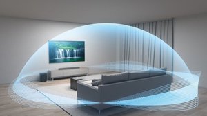 Dolby Atmosによる「バーチャルハイト」では空間の高さを表現し、雨や落雷、空中を旋回するヘリコプターなど頭上にある音声情報を再現することで、映像の立体感をもたらすと説明する。これら2つの技術を組み合わせて、前後左右の二次元的な平面空間に加え、高低までも描き出す三次元的な立体空間に包まれ、まるで映画館にいるかのような「イマーシブオーディオ(没入感)」を自宅で体感できるという。