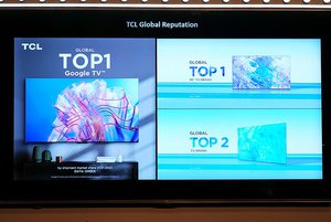 まず、TCLのグローバル業績について言及。市場調査機関OMDIAの最新レポートによれば、TCLは販売台数で世界第2位、Google TV部門および98インチTVにおいては世界第1位を達成したとアピール。