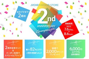 JVCケンウッドは、公式オンラインストア「JVCケンウッドストア」の開設2周年を記念した「おかげさまで2周年“2nd ANNIVERSARY キャンペーン”」を本日7月6日から開始した。期間は8月6日(日)まで。