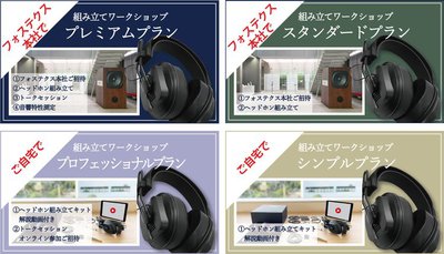 また、ワークショップに参加できなくとも自宅でじっくりヘッドホン組み立てを体験できる、RPKIT50と解説動画視聴権がセットとなった「おうちで組立 シンプルプラン」(27,225円〜)、トークセッションへのオンライン参加権も付いた「おうちで組立 プロフェッショナルプラン」33,000円〜)も用意する。