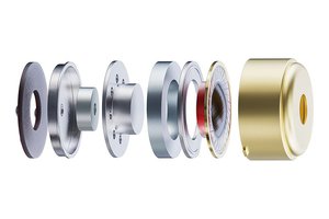 巻き貝をイメージした特徴的な形状のハウジングは、亜鉛合金をダイキャスト成形し、研磨と電気メッキを施して製造した。亜鉛合金製のハウジングは内部の定在波を抑制する効果を備えており、優れた耐久性も実現する。デザイン面でも、装着時に3箇所の接触面で保持するように人間工学に基づいた設計。外観の美しさと優れた装着感を両立する。
