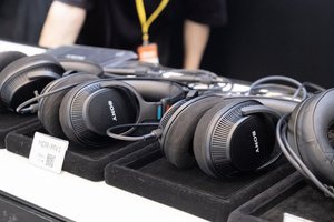 ソニーのブースでは5月に発売されたばかりの開放型モニターヘッドホン「MDR-MV1」やウォークマン各種、「LinkBuds S」などの完全ワイヤレス、ながら聴きヘッドホン「Float Run」など、ポータブル製品を一斉展示。