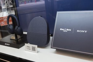 また、現在受注期間中の、ワイヤレスヘッドホン「WH-1000XM5」のBlue Note Tokyoコラボカラー「ミッドナイトブルー」モデルの実機も展示。本体に加えてキャリングケース、オリジナルパッケージを確認することができた。