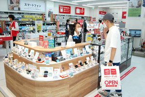 店内4ヶ所には簡単な質問に答えていくと、お客様の希望に沿った商品を紹介する接客端末を設置する。電球や無線ルーターなどのお持ち帰り商品、冷蔵庫、洗濯機などの大型商品について、お客様の生活スタイルやニーズに合ったスムーズな商品選びを手伝い、買い物をサポートする。