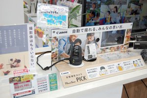 カメラコーナーではキヤノンの自動撮影カメラ「PowerShot PICK」をクローズアップ。事前に有明ガーデン周辺をつぶさに歩いた白川貴丸店長が、親子が公園で遊ぶ光景を目にして、撮影係がいらない、家族全員を思い出に残せる同モデルに注目した。バイタミックスの高級ミキサーはコジマでも扱う店舗が少ないが、商圏の世帯年収が高いことから前面にアピールした。