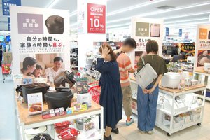 導入するメリットをわかりやすく紹介している布団乾燥機や除湿器は、タワーマンションでは布団をなかなか外に干すことができない事情を捉えたもの。反対に、IHクッキングヒーターの普及率が高いことからガスコンロは展示していない。