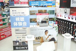 ビックカメラは、7月21日(金)にソニーから発売される持ち運びができる完全ワイヤレスのポータブルシアターシステム「HT-AX7」の発売前先行視聴会を、有楽町店、大宮西口そごう店、名古屋JRゲートタワー店の3店舗で本日7月15日(土)から17日(祝・月)まで、新宿東口店で7月15日(土)・16日(日)に開催している。時間は各店各日とも10:00〜18:00まで。