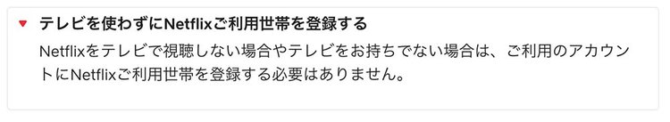 Netflixのヘルプページによれば、テレビで視聴しない場合やテレビを持っていない場合は、「ご利用のアカウントにNetflixご利用世帯を登録する必要はありません」となっている。