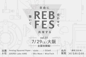 finalは、オリジナルブランド「REB」の全国出張イベント「REB fes」の第一弾として、「REB fes vol.01@大阪」を7月29日(土)に大阪・梅田にて開催。このほど出展する6社が決定し、イヤホン「GRID01(グリッド01)」の先行販売が行われることも明らかになった。