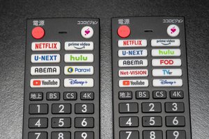 付属のリモコンも新しくなり、10種類の動画サービスにワンタッチでアクセスできるダイレクトボタンを搭載する。対応サービスは、Netflix、Prime Video、U-NEXT、Hulu、ABEMA、FOD、Net-VISION、TVer、YouTube、Disney+。ダイレクトボタンを押すだけで、テレビの電源がオフの状態であっても、動画サービスの視聴アプリをすぐ起動可能だ。またリモコンおよび本体にはマイクを内蔵しており、見たい番組の音声検索や、Googleアシスタントの利用が行える。