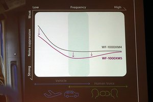 音質設計を担当したソニーの菊池浩平氏は、「いま、我々が持つ技術を惜しみなく入れ込むことができた製品になった」とコメント。大きな特徴のひとつであるノイズキャンセリング性能について「ほぼすべての周波数で能力が向上しているが、例えば、電車に乗った時の車輪の擦れるキーっという高い音だったり、電車の走行音そのものといったノイズに対して、特に性能の進化を実感いただけると思う」と、具体例を挙げながら説明した。