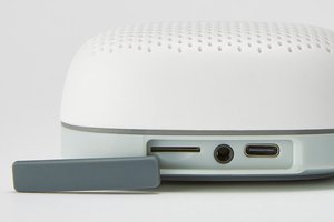 さらに、本体側面のカバー内にはmicroSDカードスロット/AUX(3.5mmステレオミニ入力)も搭載。microSDカードスロットは最大128GBまでのmicroSD/SDHC/SDXCカード(exFATフォーマット)を認識し、mp3/WAV形式のオーディオファイルをリピート再生できる。
