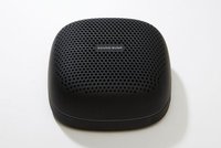手のひらサイズのボディ内に直径66mmのフルレンジスピーカーユニットを搭載し、広がりのあるサウンドが楽しめるとするポータブルスピーカー。本体はIPX5等級の防滴に対応し、付属のストラップを取り付けることでリュックなどに吊り下げることも可能で、さまざまな場所に持ち出して活用できるとしている。
