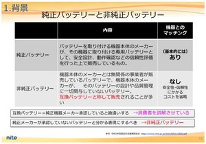 ネットにも多数の事故事例が報告されているが、非純正バッテリーが抱える主なリスクを次のようにまとめている。
