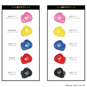 それぞれフェイスプレートがキャラモチーフのカラーとなっているほか、右側は結束バンドのロゴを、左側は各キャラのパート楽器とネームロゴをデザイン。さらに左右とも、シェル部分に英数字8文字以内での文字刻印を行うこともできる。