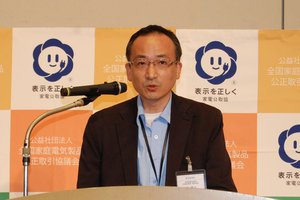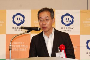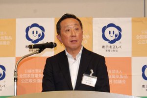 来賓挨拶では、消費者庁 審議官・真渕博氏が、「豊かな生活を享受できる家電製品が次々に出てくるなか、一般消費者が適切な商品選択をするためには、まずは適正な表示が大前提として不可欠。その点において、協議会で運用されている公正競争規約は大変重要になる」とあいさつ。続けて、違反行為に対する抑止力の強化等を目的とした景品表示法の改正について説明した。