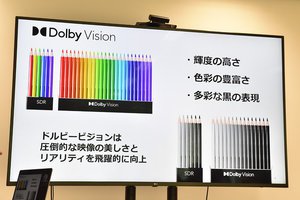 ドルビーの提供する、広色域で鮮明な色彩と幅広いコントラストを表現するハイダイナミックレンジ(HDR)映像フォーマット「ドルビービジョン」。同社が提供する立体音響フォーマット「ドルビーアトモス」の認知度は高まってきたが、ドルビービジョンについては「まだまだスタンダードになりきれていない」とドルビージャパンのマーケティング シニア・マネージャー金重氏は語る。