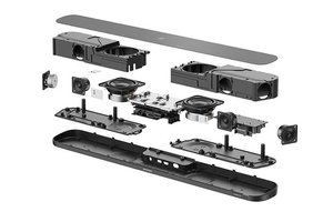 AMBEO Soundbar | Miniでは小型化を実現しながらも、上位モデルPlusの特徴である「一台で7.1.4ch」再生が可能な点を踏襲。ドライバーは自社開発した計6ユニットを搭載する。構成は1.6インチのセルロースコーン・ハイエンドフルレンジドライバー×4(フロントに2基/サイドに2基)、4インチのロングスローウーファー×2で、合計250WのD級アンプをそれぞれに割り当ててドライブ。ドライバーごとにチャンバーを設けることで、お互いの音に影響を与えないよう配慮されている点も、上位モデルから継承された。なお、Plusでは9ドライバーを搭載しており、フルレンジドライバーはフロント3基/サイド2基、そして上方向に2基の配置となっているところにMiniとの違いが設けられている。