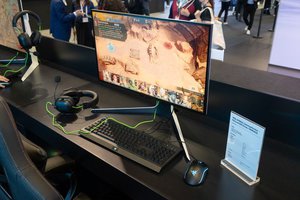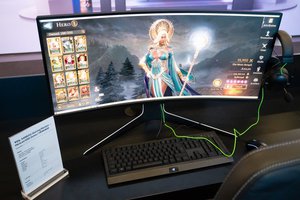 ゲーミングをテーマにしたエリアも用意されており、こちらでは2つのゲーミングモニターが展示。R1500カーブの34型21:9ウルトラワイドモニター「34R83Q」、27インチの16:9ワイドモニター「27R83U」をPCゲーミングで体験できるようになっている。どちらもFost-HVAパネルを採用し、ミニLEDによって1152のローカルディミングゾーンに対応。HDR1400をサポートする。またゲーミングのエリアでは、ゲーミングテレビ「C745 QLED Gaming TV」とPS5を組み合わせたデモも実施された。