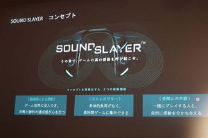 SOUND SLAYERは「臨場感による感動」「ストレスフリー」「仲間との共感」という3つのポイントを掲げており、ゲームのジャンルにあわせたサウンドモードや、人間工学デザイン、自然な音質で仲間と会話できるボイスチャット機能など、それぞれの体験を実現するための技術で構成されている。