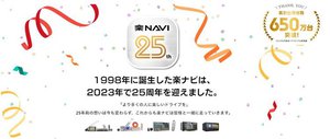今年2023年、この楽ナビが発売開始から25周年を迎えるとともに、累計出荷台数650万台を達成。これを記念したプロモーションを実施していく。