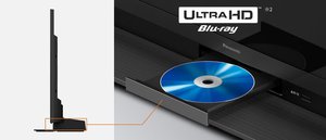 スタンド部分に2TB HDDと4K Ultra HD ブルーレイ再生に対応したディスクレコーダーを備えた一体型モデル。レコーダーをテレビと一体化したことで、容易な設置とリモコンやUIのシンプル化による直感的な操作を実現したと同社は説明している。