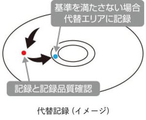 「DM for Archive」記録と記録品質確認を一連の動作で実行し、品質基準を満たさないと判断した場合に代替エリアへ記録することで、日本工業規格である「JIS X6257」規格のDM機能に準拠した記録品質を確保するという。