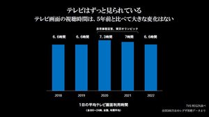 TVS REGZAは、一部メディア向けに、国内テレビ市場の動向を説明。「『テレビ離れ』などと言われることも多いが、我々のとっているデータをみると、実はそれほどテレビ離れは起こっていない」など、現代のテレビの使われ方について紹介した。