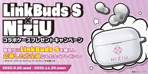 キャンペーン期間(購入期間)内に「LinkBuds S」(ホワイト、ブラック、エクリュ、アースブルー)を購入し、同社指定の手続きに従って応募期間内に申し込みした方全員に、もれなく充電ケースを収納できる「LinkBuds S×NiziUコラボケースカバー」がプレゼントされる。購入期間は11月20日(月)まで、応募期間は11月30日(木)10時まで。