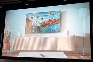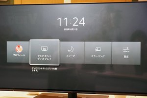 画像を表示させた状態で、「ベートヴェン交響曲第5番を聴かせて」などと好みの音楽を呼びかければ、自動で音楽も併せて流してくれる。右上のメニューボタンを押すことで、ウィジェットやアンビエントディスプレイの背景変更も行えた。本機能がこれまでにはなかったテレビの新たな役割を問うきっかけとなりそうだ。