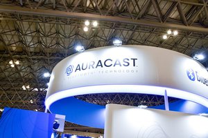 Bluetooth SIG ブースでは、Bluetoothの新規格LE Audioに基づく配信技術「AURACAST」をフィーチャー。対応デバイスとイヤホンを手に取って機能を体感できるブースを展開している。