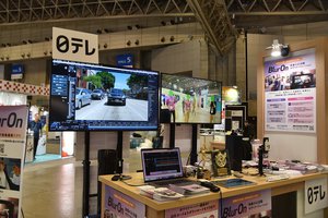 日本テレビでは、NTTデータの協力に基づくAI自動モザイクソリューション「BlurOn(ブラーオン)」のリアルタイムデモンストレーションを実施。これまで映像編集者が1フレームずつ行っていた人物の顔やナンバープレートへのモザイク入れを自動化することができる。