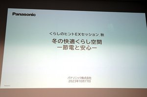 パナソニックは、冬シーズン到来を前に大型家電を活用した快適なくらし空間を実現するためのヒントを紹介する展示内覧会「くらしのヒントEXセッション秋 『冬の快適くらし空間(節電と安心)』」を10月17日にパナソニック目黒ビルで開催した。本稿ではその模様をレポートする。