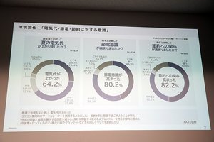今年の夏が例年を上回る厳しい暑さだったことで「消費者の節電や節約に対する関心は高まっている」と指摘。9月に実施した「電気代・節電・節約に対する意識」をテーマにしたインターネット調査では、64.2%が「電気代が上がった」、8割以上が「節電や節約への意識や関心が高まった」と回答した。