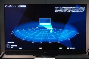 ラインアレイスピーカーの特性を利用した「サウンドフォーカス」機能についても紹介する。音波の向きを制御する独自技術を用いて、音が聴こえるエリアや方向を調整できるというもの。夜中に自分だけ聴こえるようにできる「ピンポイントモード」、指定のエリアだけ音を外して視聴できる「エリアモード」など全4種のモードを備えている。