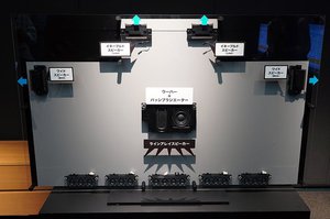 音響面からは、正面に配置されたラインアレイ、横向きのワイドスピーカー×2、上向きのイネーブルドスピーカー×2、低音のウーファー+パッシブラジエーターからなる「360立体音響サウンドシステム+」を採用。Dolby Atmosにも対応し、音に包みこまれるような臨場感あるサウンドを実現する。映画のみならず、ドラマやスポーツ観戦にも最適だと謳われている。