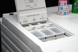 おしゃれ着洗剤を入れるタンクで、酸素系液体漂白剤を切り替えて使用できる業界初の機能も搭載。設定はカラーパネルからタッチ操作で簡単に行える。