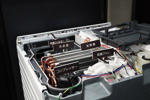ヒートポンプ乾燥機能は、高さを抑えた薄型ヒートポンプ部品をドラム上部に配置する「はやふわ乾燥ヒートポンプ」を採用することで、より大風量を実現できる。除湿・乾燥の効率をアップし、時間削減により省エネにも貢献する。通常のヒーター式と比較すると電気代が約半分以下になる結果も確認できたという。