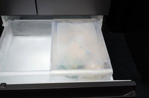 うまもり保存は、冷凍室上段ケースに専用の「うまもりカバー」を搭載することで、温度変化による影響を抑えて食品の霜つきを抑えるというもの。ドアを開けた際の外気の侵入を防ぐとともに、カバーには無数の穴が空けられ、保存中にケース内の湿気を逃がすことできる。