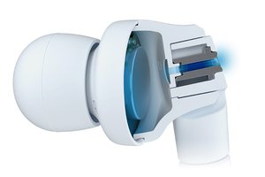 ドライバーは、音の出口であるポートまで一直線となるアキシャル(同軸)構造で配置し、音波のロスを抑制。加えてドライバーの前面には、TPE素材製の「アコースティックダンピングオプティマイザー」を搭載。内部空間の容積を最適化すると同時に、肌に近い硬度のTPE素材によって音質に悪影響をおよぼす不要な反射を軽減している。
