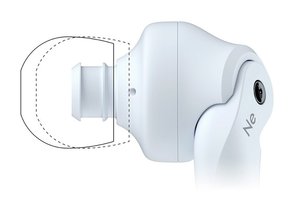 イヤーピースとして、ブランド独自の「ディープマウントイヤーピース」4サイズ(XS/S/M/L)が付属。一般的なイヤーピースとは逆に先端側を太くすることで、耳の奥の広いエリアにフィットさせ、密閉性と装着安定性の向上を図っている。また、ノズル部は突起のつけられた「アジャスタブルポート」となっており、イヤーピースの取り付け位置を2段階で調節可能。装着感を微調整できる。