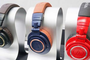 もう1つ、オーディオテクニカの定番モニターヘッドホン「M50」シリーズの展示では、歴代の限定カラバリを一斉に並べるという取り組みが行われていた。M50シリーズは2007年に発売されて以降、全世界で累計250万本を超える販売数を誇る。その限定カラーは2012年よりスタートし、2020年以降はユーザー人気投票により選ばれたカラーが商品化されるなど、遊び心ある展開でファンを楽しませてきた。
