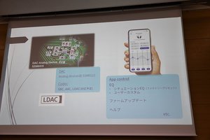 DACにはアナログ・デバイセズの「SSM6515」を採用。DSP機能も内蔵されており、専用アプリでさまざまなイコライジングも可能となる。BluetoothのコーデックはSBC、AACに加え、将来的にはLDACへの対応も予定されている。なお、バッテリー切れの際には有線ヘッドホンとして使用することもできるという。