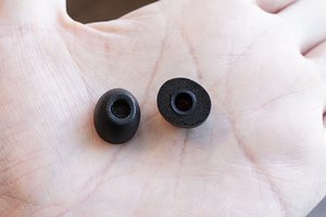 温められることで柔らかさが増すフォーム素材が特徴のイヤーピース・コンプライからは、新たに発売される3種類の有線イヤホン向けモデルが体験可能に。標準的な円筒形モデル、コンプライでは初の楕円形モデル、日本人に多い耳の形状に合わせた円形モデルがラインナップされる。