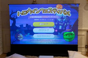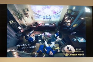 Aladdin Marcaからの映像をスクリーンに投写していたルームでは、少し明るい環境下でも映像が暗くならずに映し出されており、レーザー+LEDのハイブリッド光源による明るい映像、超短焦点プロジェクターならではの“短い距離で大画面”を体感できた。