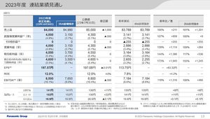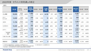 2023年度の年間業績見通しでは、売上高を1000億円下方修正、調整後営業利益を300億円下方修正、営業利益を300億円下方修正している。税引き前利益、当期純利益は金利の上昇に伴う金融収支の良化等を反映して当初の見通しどおりとした。